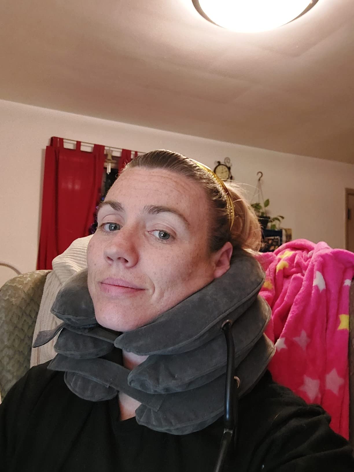 I suffer from tech neck due to my job and from being on my phone a lot. This has helped stretch my neck and relieve so much pressure. I am finally starting to be able move my neck without constant pain. I usually will sit with it on and adjust it every 5 minutes for an hour. I’ve noticed a lot less fluid buildup and headaches as well!